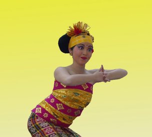 | バリの各家庭では椰子の葉をきれいに折って、その上に花などをのせた供物を作り、毎日神々に祈り、捧げています。チャナン(canang)は供物(バリを訪れたらきっと目にするでしょう)、サり(sari)は花を意味します。チュンパカやジュプン(どちらもプルメリアの花の種類)の花々のように香り高く愛らしく、そして神々とバリの人々に感謝して大切に踊り続けていきたいと願っています。 |